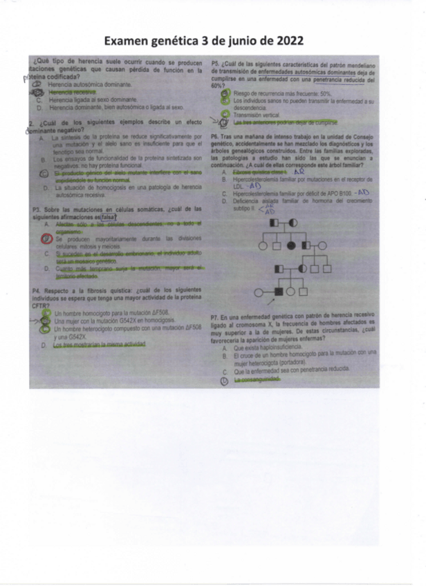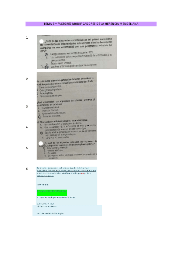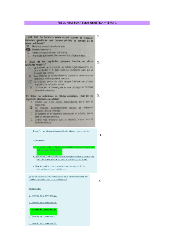EXÁMENES - PREGUNTAS POR TEMAS GENÉTICA CON RESPUESTAS
