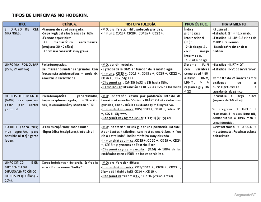 He publicado nuevos apuntes de 4º Oncología y genética médica: TABLA-LINFOMAS.pdf