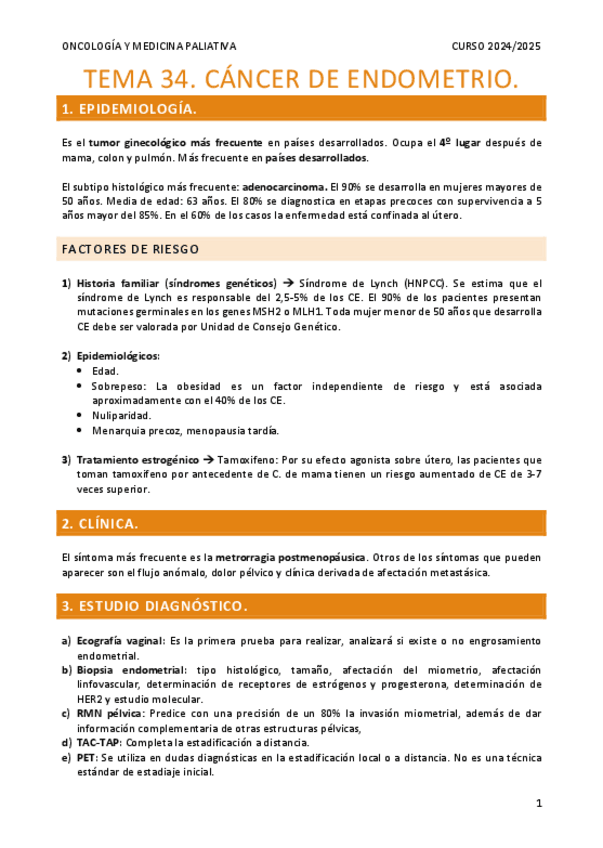 He publicado nuevos apuntes de 4º Oncología y Medicina Paliativa: Resumen-Tema-34.-Cancer-de-endometrio.pdf