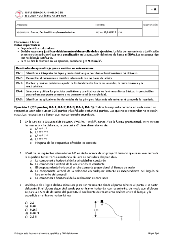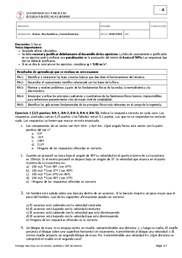 He publicado nuevos examenes de 1º ONDAS, ELECTROSTÁTICA Y TERMODINÁMICA: Física exámenes