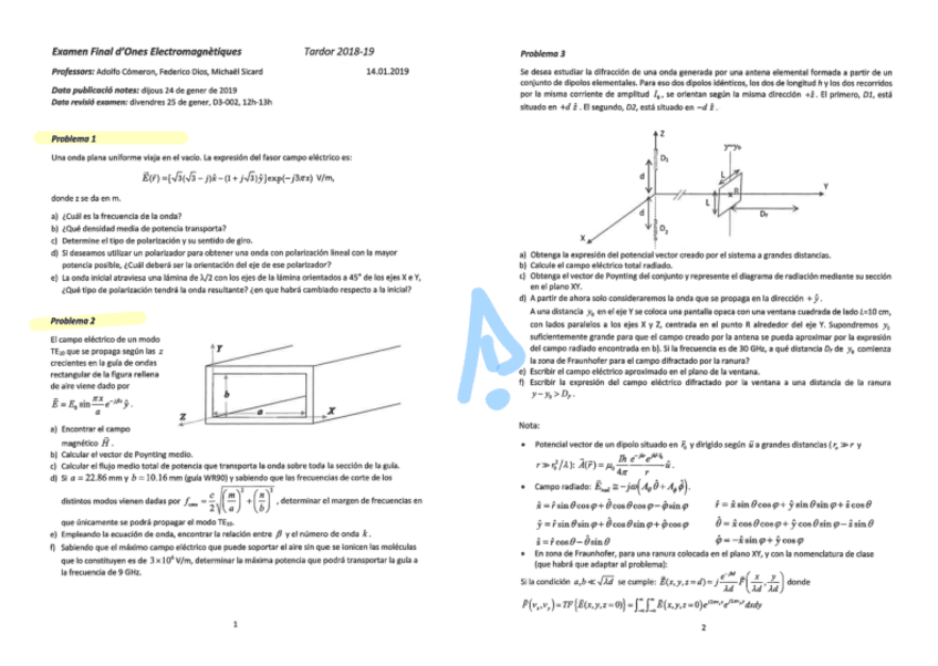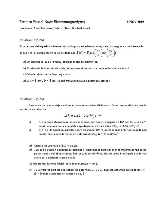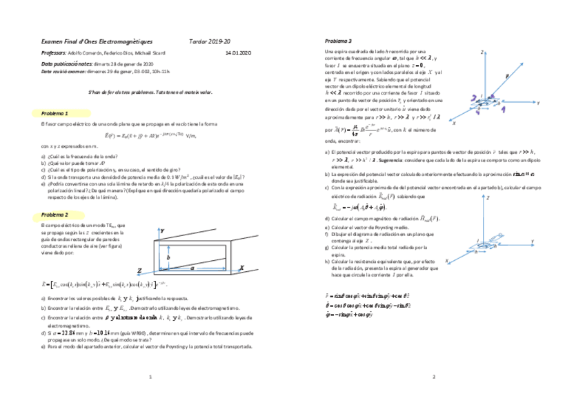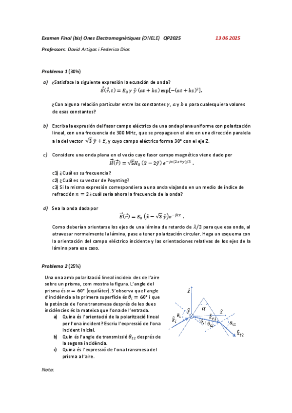 He publicado nuevos examenes de 2º Ones Electromagnètiques: Onele-Parcial-Q2-20242025.pdf