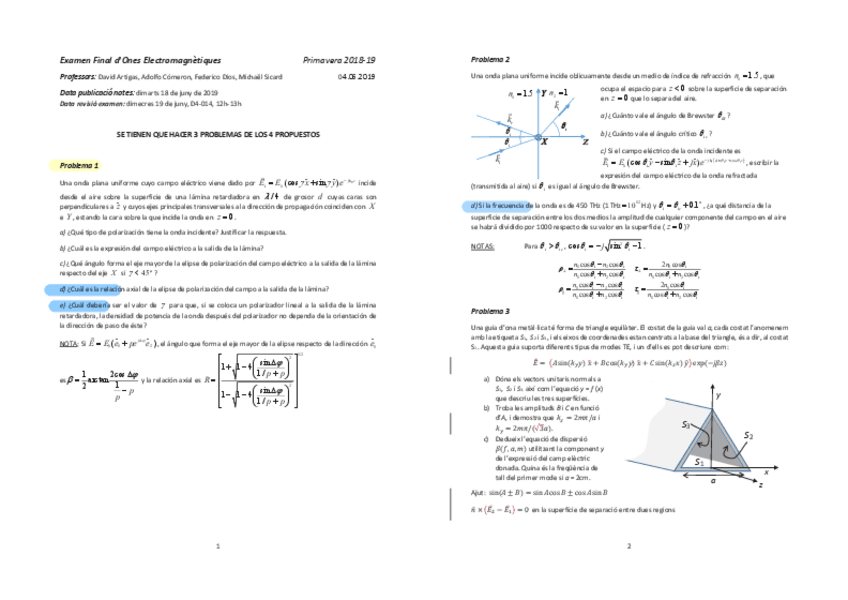 He publicado nuevos ejercicios de 2º Ones Electromagnètiques: ONELE.-Ejercicios-Incidencia.pdf
