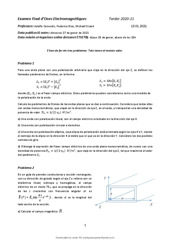 He publicado nuevos ejercicios de 2º Ones Electromagnètiques: ONELE.-Ejercicios-Guias-de-onda.pdf