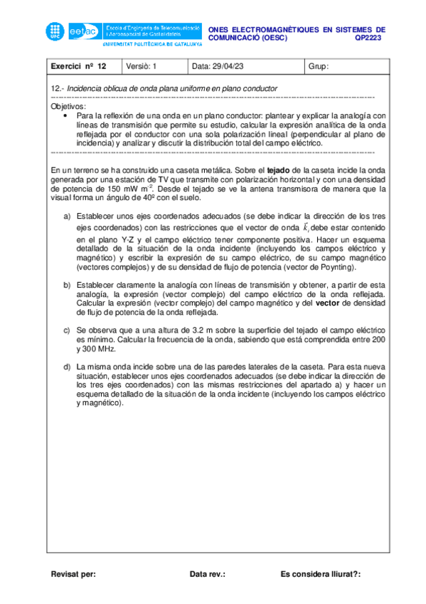 He publicado nuevos ejercicios de 2º Ones Electromagnètiques en els Sistemes de Comunicació: Lliurable12.pdf