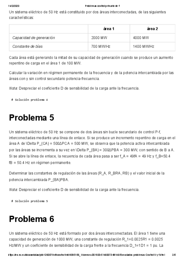 He publicado nuevos ejercicios de 2º Operación y Control de Sistemas Eléctricos: Problemas-AGC.pdf