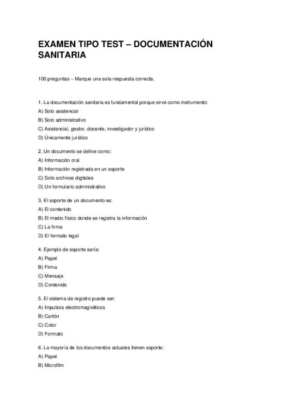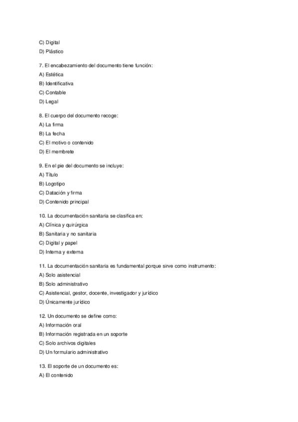Examen tipo test del tema 5 de OAS (basado en el libro Operaciones Administrativas y Documentación Sanitaria (Mc Graw Hill)) CON LAS SOLUCIONES EN LA ÚLTIMA HOJA