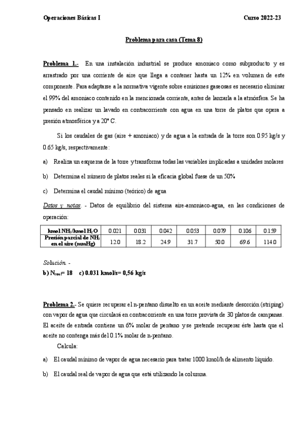 He publicado nuevos ejercicios de 3º Operaciones básicas de la Ingeniería Química I: Problemas-Para-Casa-Tema-8.pdf