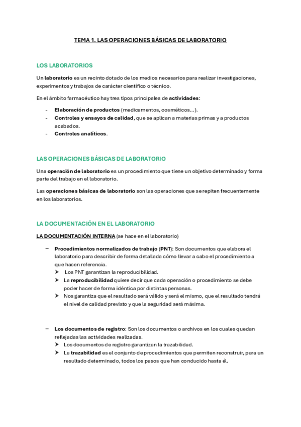 Tema 1: Las operaciones básicas de laboratorio. BASADO EN EL TEMARIO DEL LIBRO ALTAMAR. SON APUNTES DE TODO EL TEMA, PERO TAMBIÉN TE SIRVEN COMO LIBRO EN CASO DE NO TENERLO.