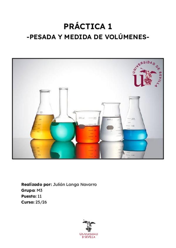 Informe de la Práctica 1 de Operaciones Básicas de Laboratorio: Pesada y Lectura de Volúmenes.