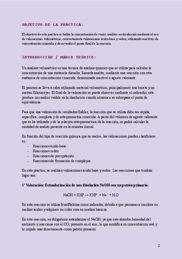 Informe de la Práctica de Operaciones Básicas de Laboratorio: Valoración de Disoluciones.