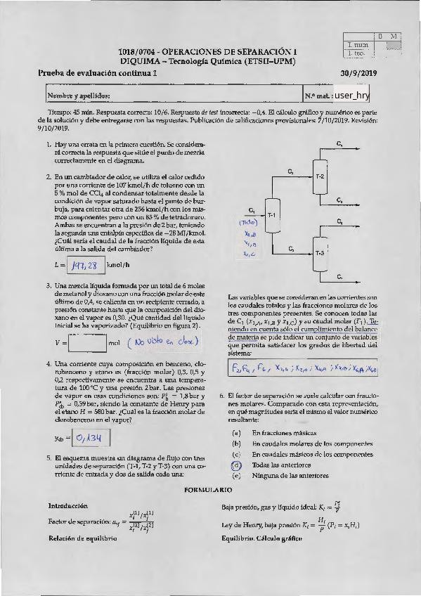 He publicado nuevos examenes de 3º Operaciones de Separación I: PECs 1 Resueltos, Sepa 1