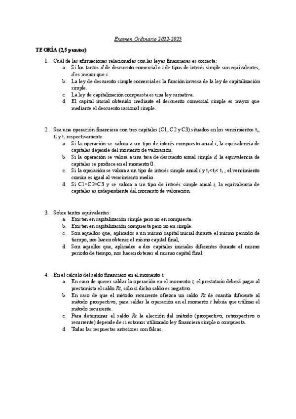He publicado nuevos examenes de 1º Operaciones Financieras: Ordinario-Teorico-2223.pdf