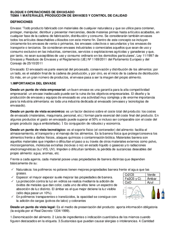 Bloque II - Envases, envasado alimentos