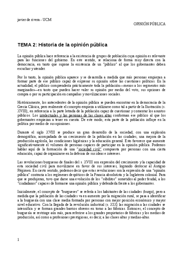 Tema 1 Opinión pública - LA PERSPECTIVA HISTÓRICA DE LA OPINIÓN PÚBLICA
