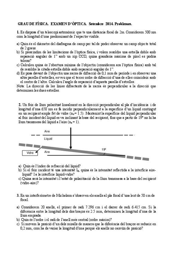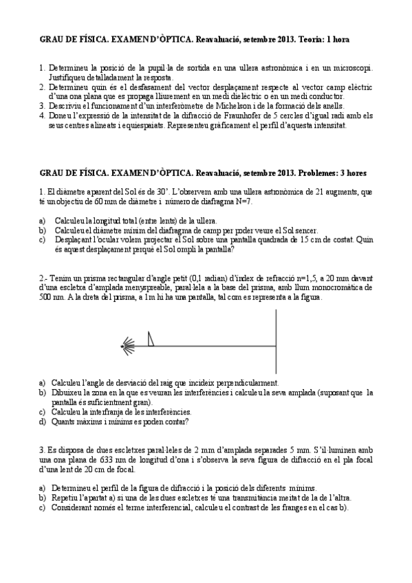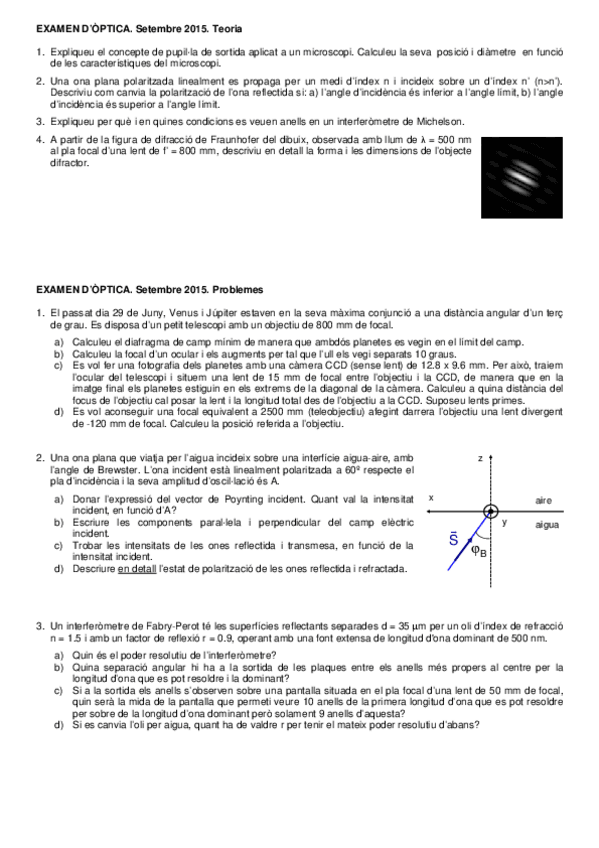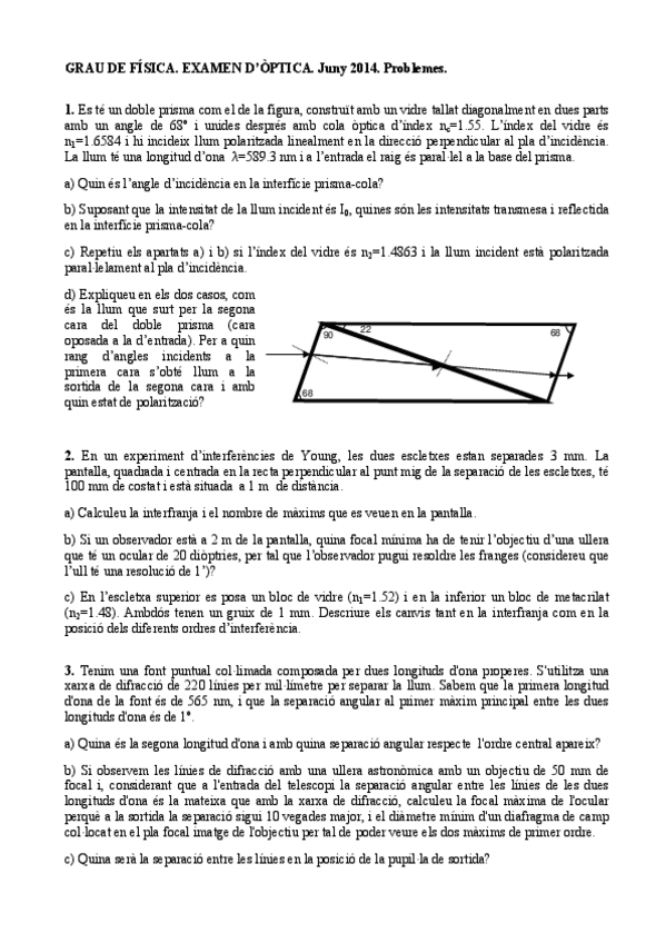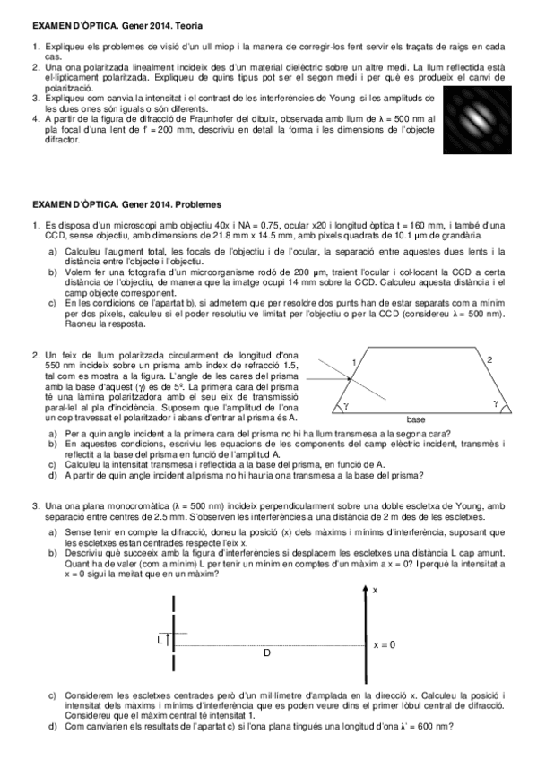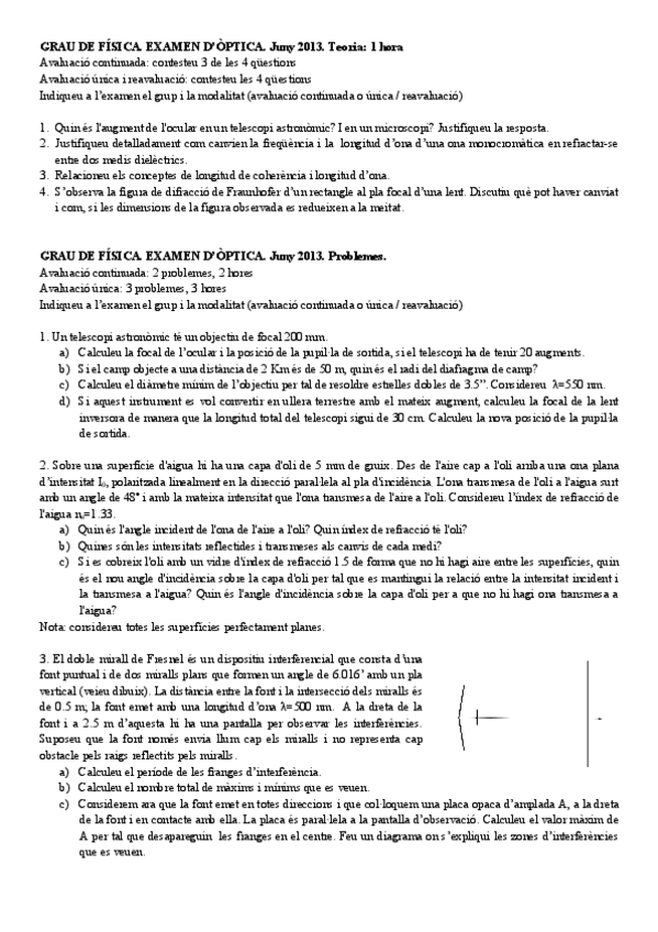 He publicado nuevos examenes de 2º Óptica: Enunciats d'exàmens
