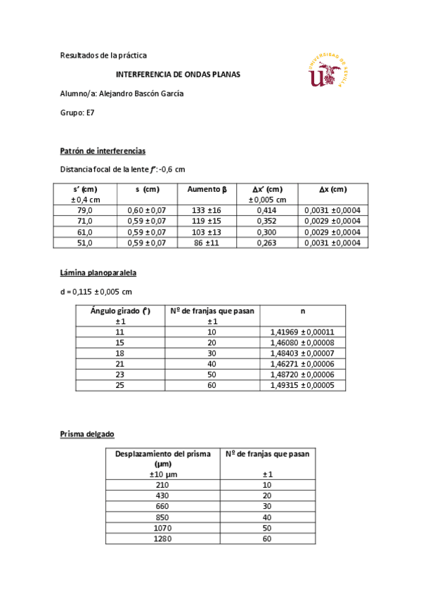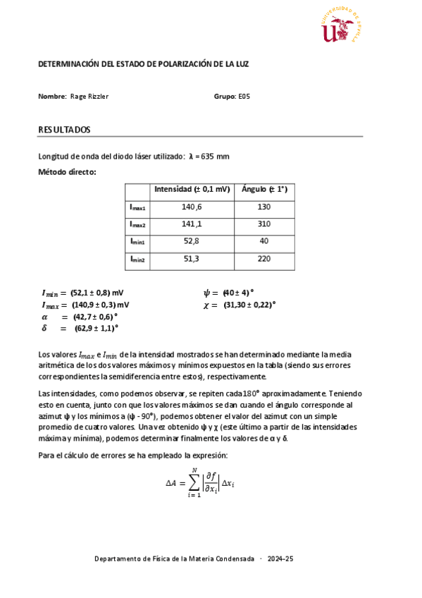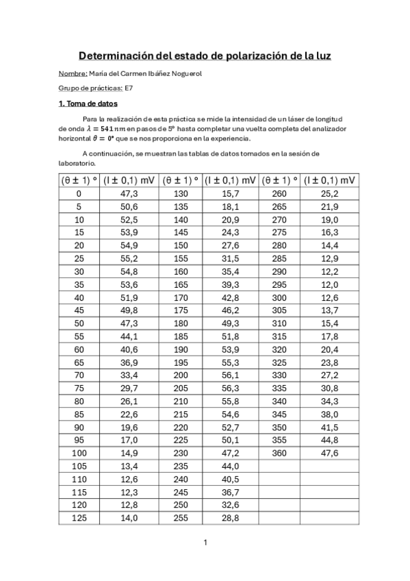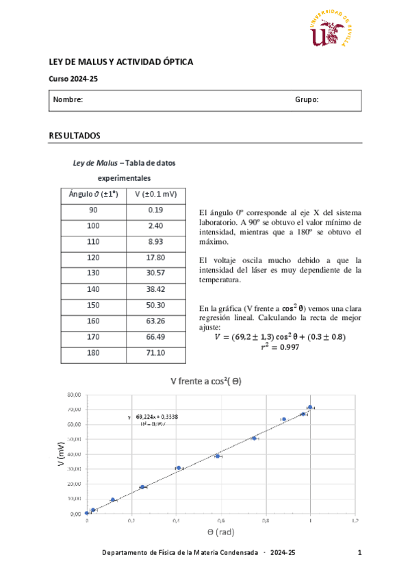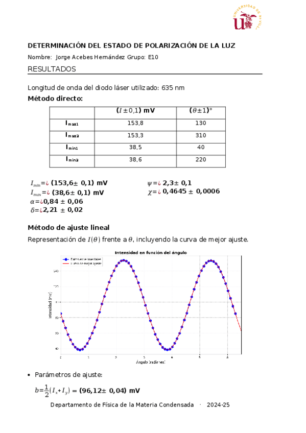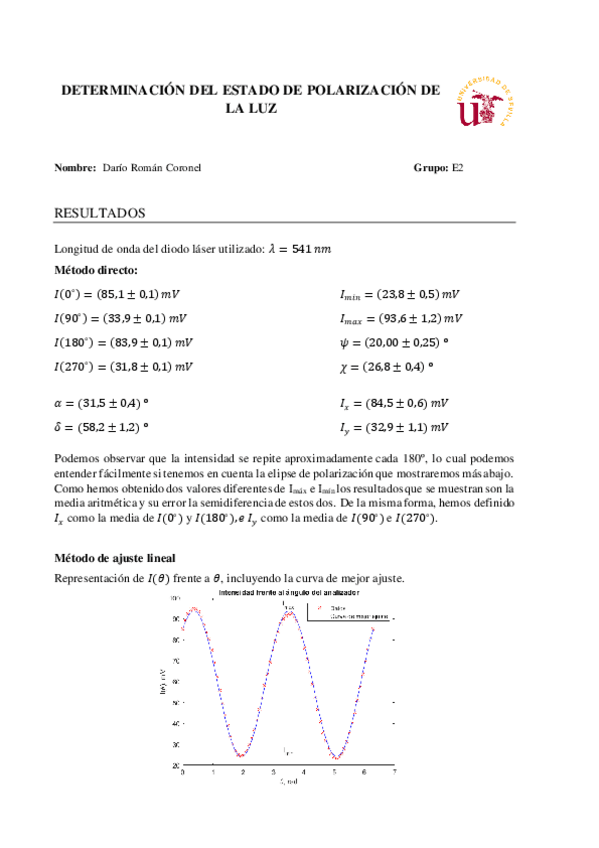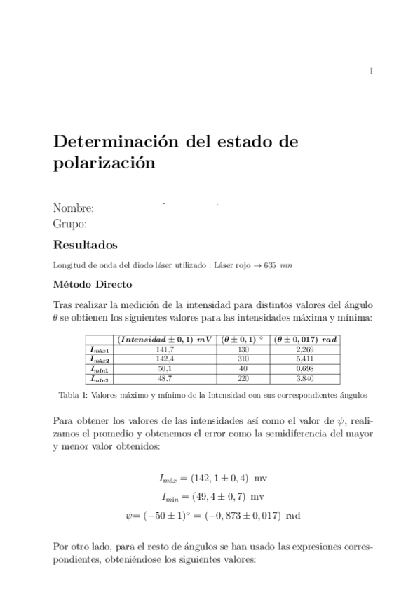 Tiene todos los cálculos de la práctica de polarización. Basta con poner las medidas