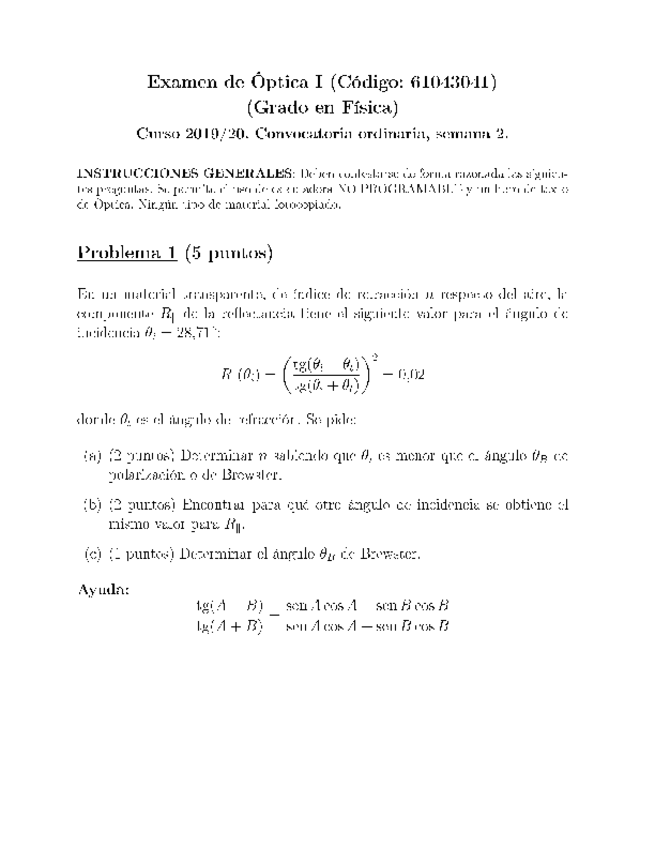 He publicado nuevos examenes de 3º Óptica I: Exámenes 2019-2023