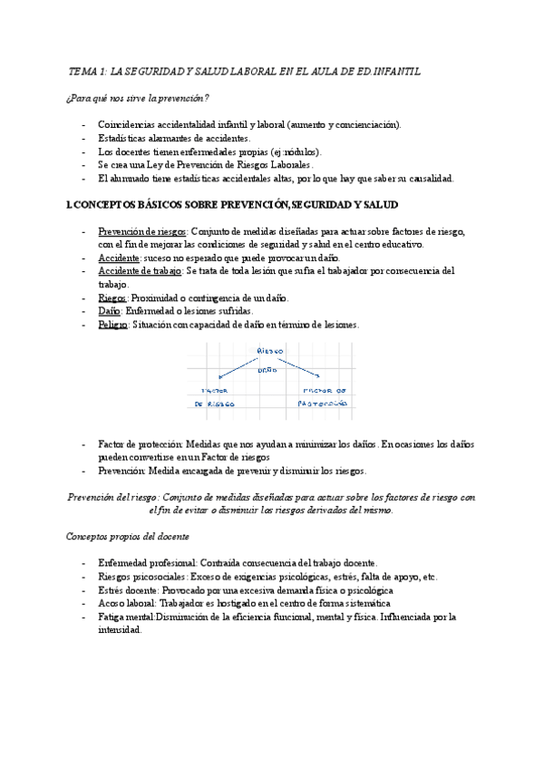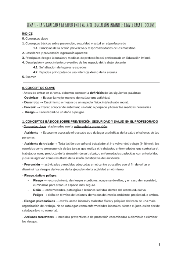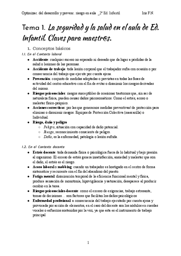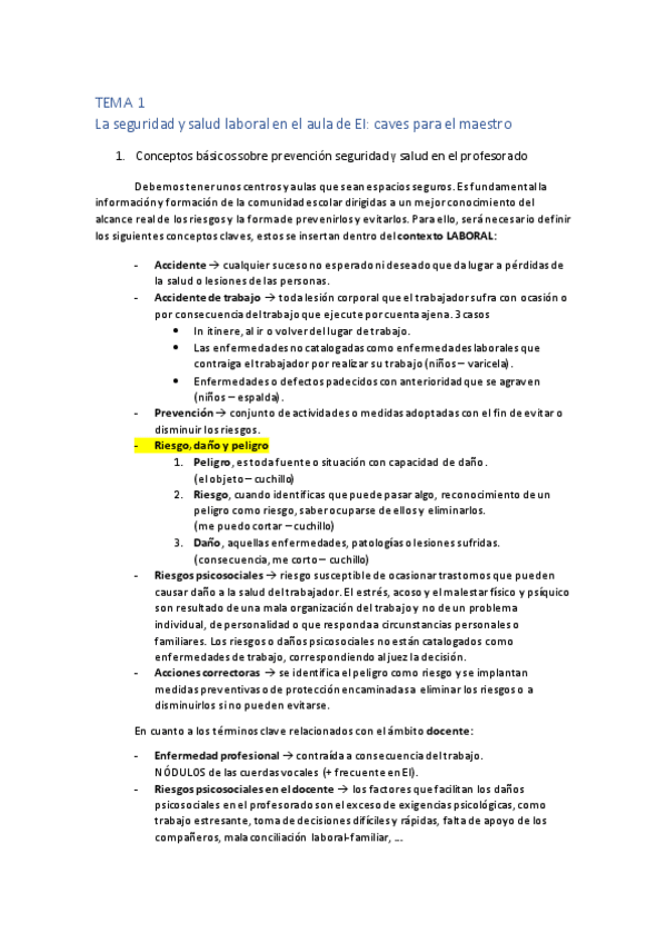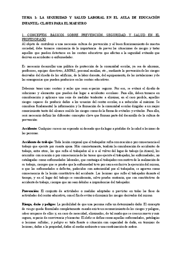 Tema 1. La seguridad y salud laboral en el aula de Educación Infantil. Claves para el maestro