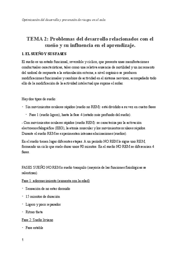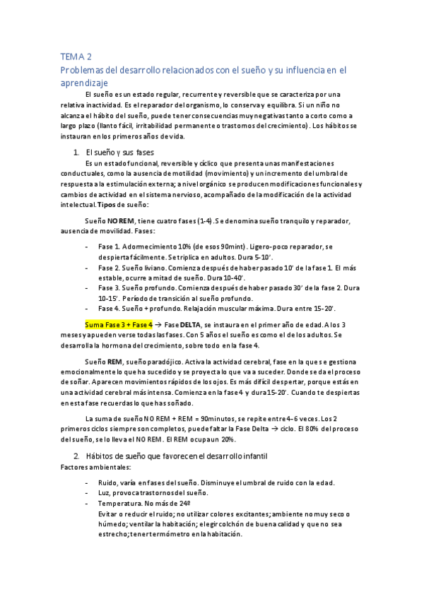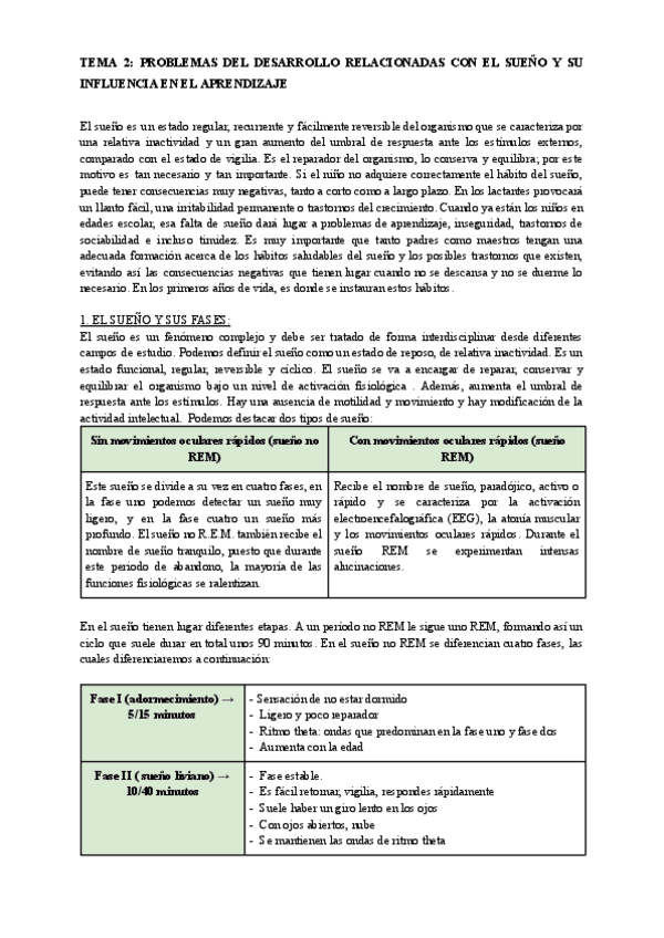 Tema 2. Problemas del desarrollo relacionados con el sueño y su influencia en el aprendizaje