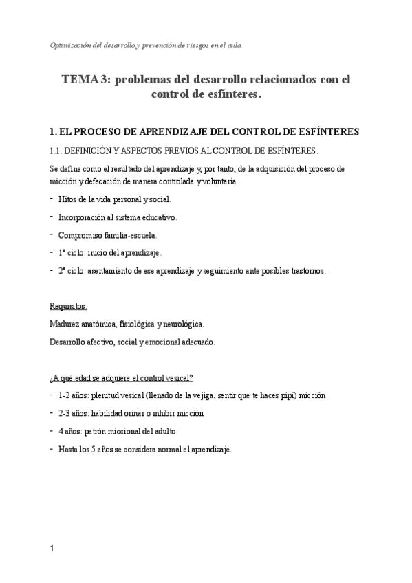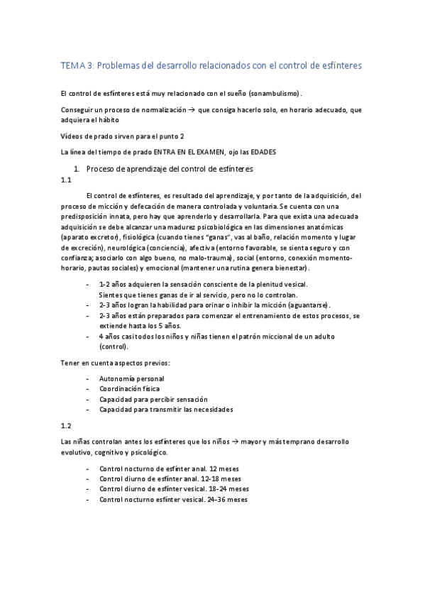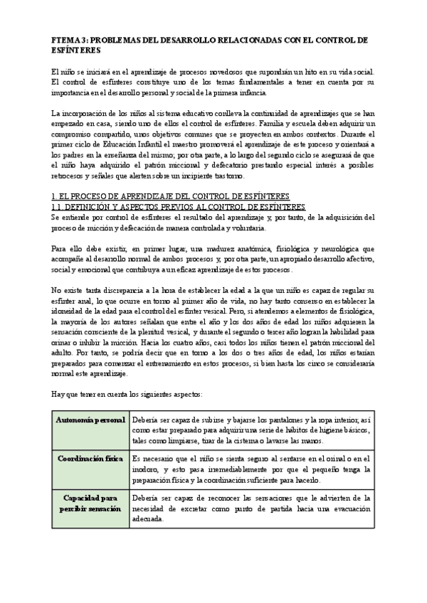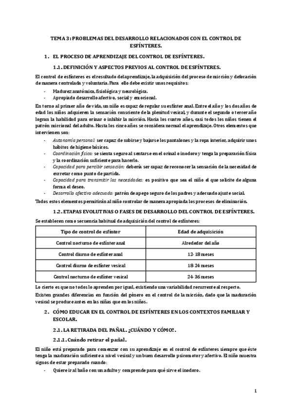 Tema 3. Problemas del desarrollo relacionados con el control de esfínteres