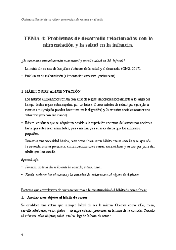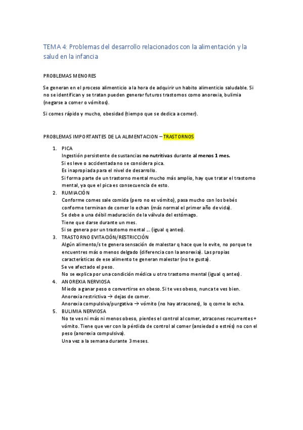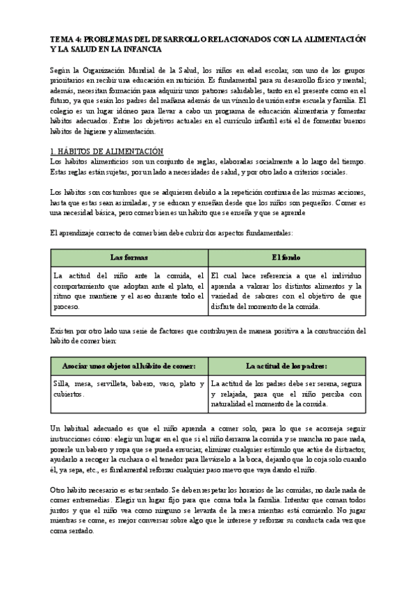 Tema 4. Problemas del desarrollo relacionados con la alimentación y la salud en la infancia