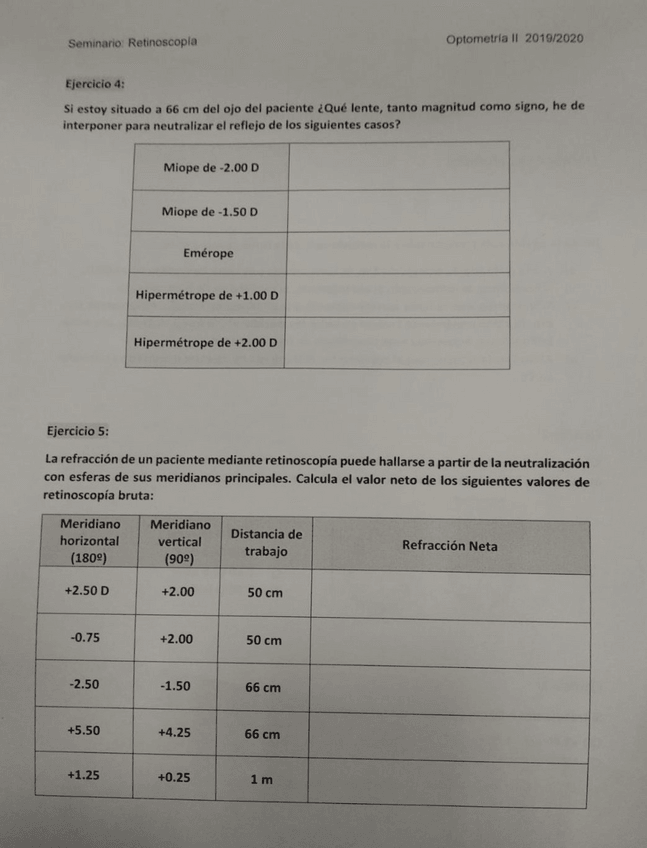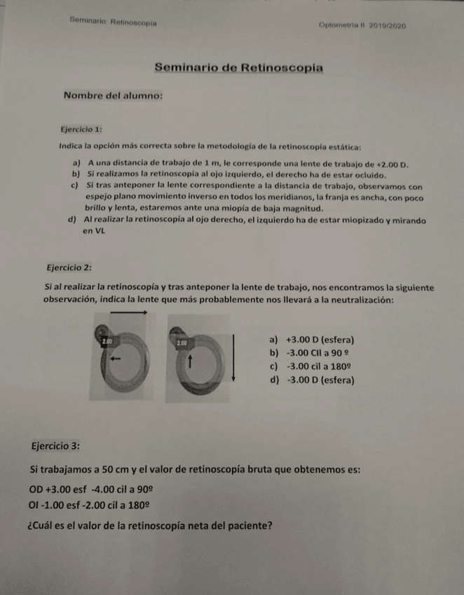 He publicado nuevos ejercicios de 3º Optometría II: Seminario Retinoscopia