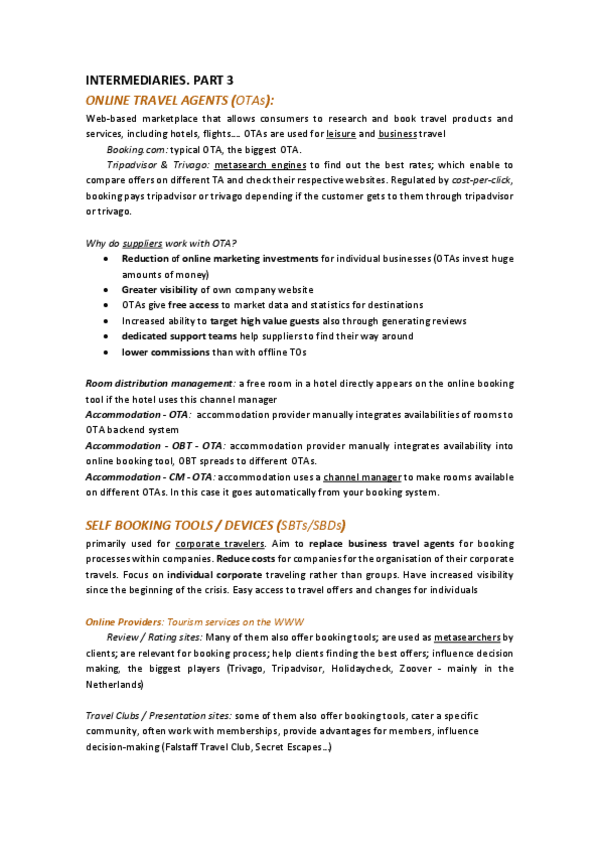 He publicado nuevos apuntes de 4º Organisation of Tourism Companies: intermediaries