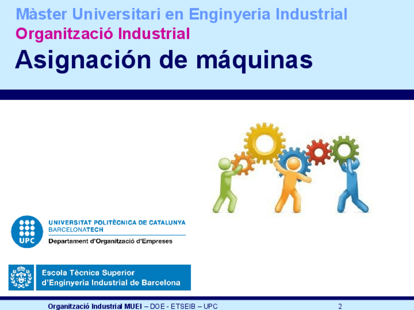 He publicado nuevos apuntes de 1º Organització Industrial: PowerPoint Tema 4: Asignación de máquinas.pdf