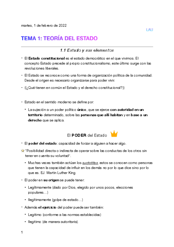 He publicado nuevos apuntes de 1º Organización Constitucional del Estado: Tema 1.pdf