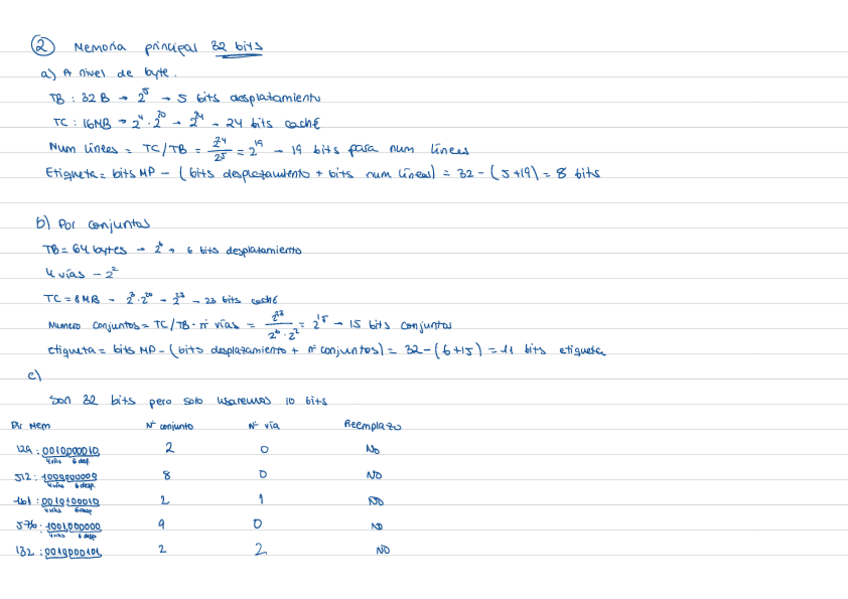 Ejercicios típicos de examen de la parte de memoria virtual y memoria caché