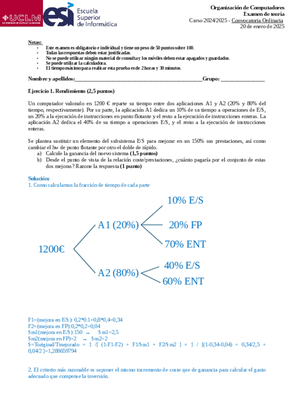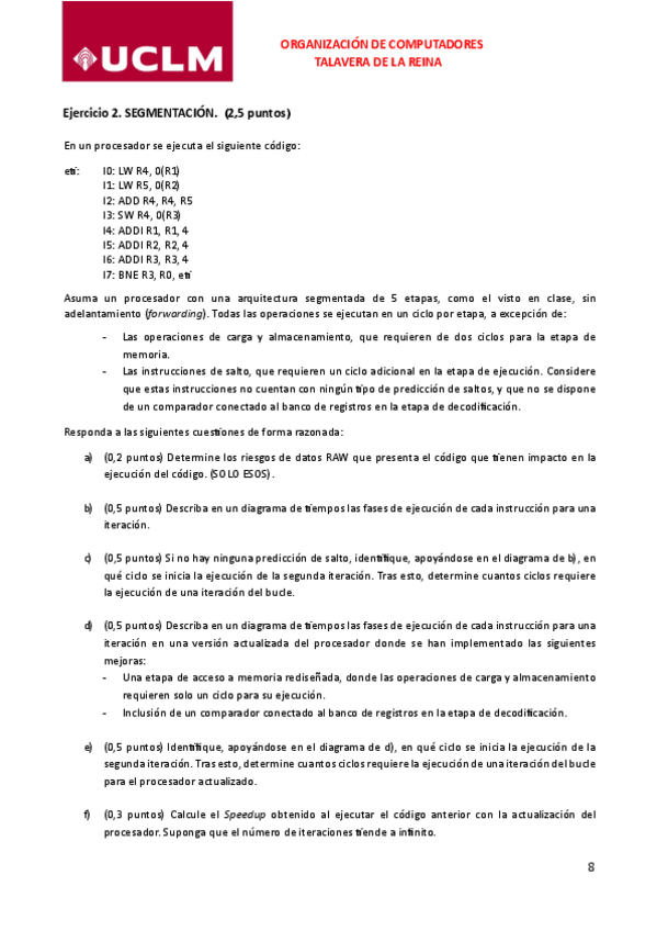 He publicado nuevos examenes de 2º Organización de Computadores: Ordinario-24-25.pdf