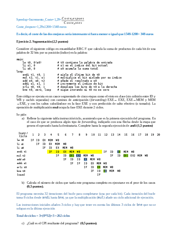 He publicado nuevos ejercicios de 2º Organización de Computadores: Ejercicio evaluable 1 Rendimiento y Segmentación