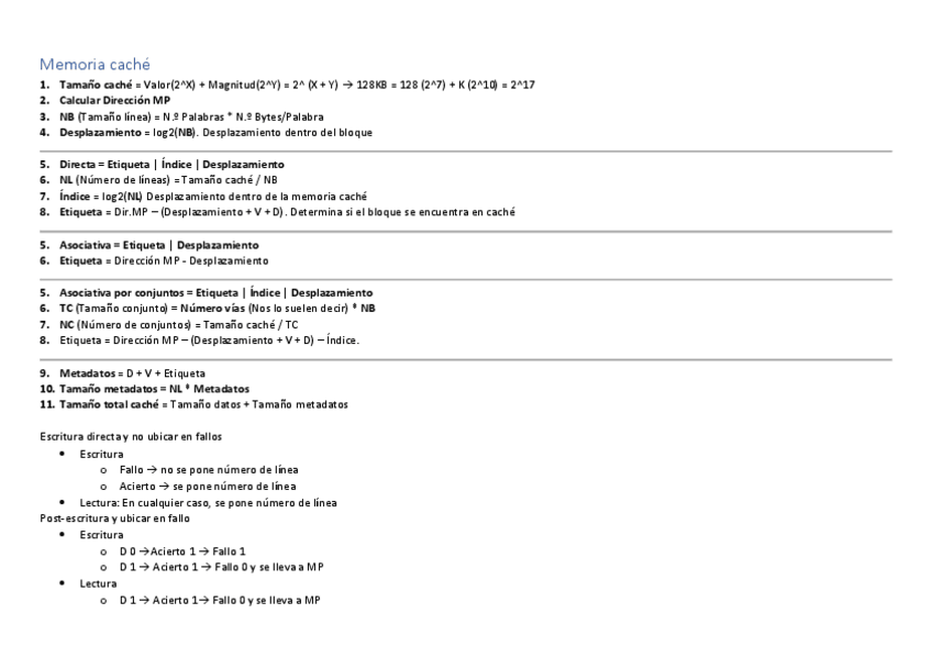 Ejercicios típicos de examen de la parte de memoria virtual y memoria caché