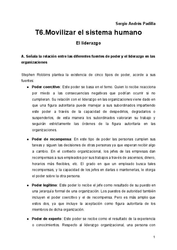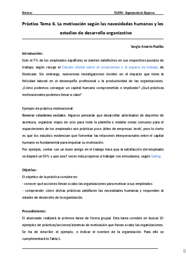 Práctica Tema 6. La motivación según las necesidades humanas y los estadios de desarrollo organizativo