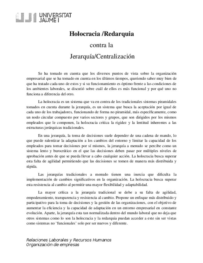 He publicado nuevos apuntes de 1º Organización de Empresas (Empresa): Informe-individual-Holocracia-vs-Jerarquia-Debate.docx