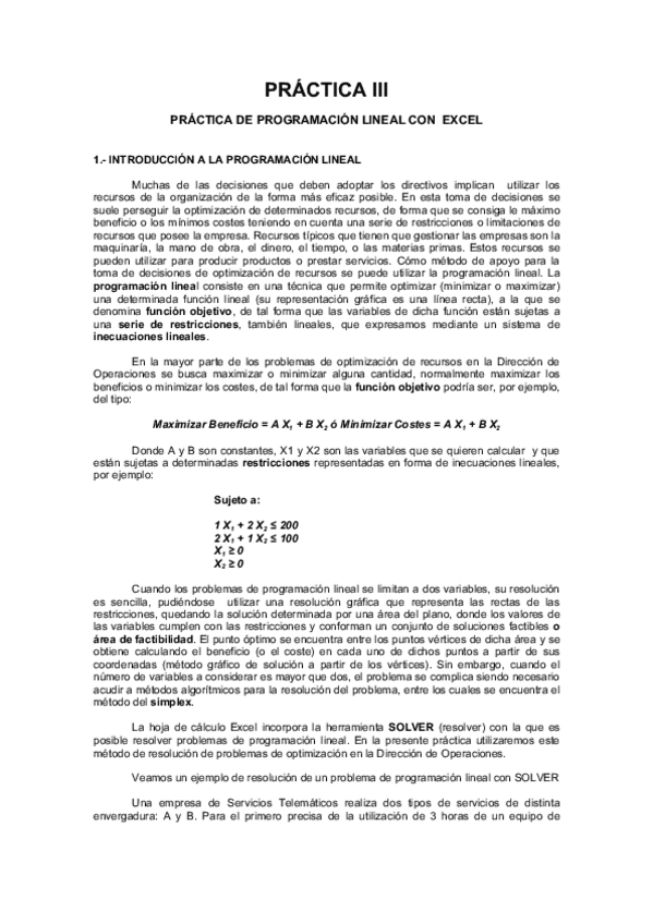 PROGRAMACIÓN LINEAL CON EXCEL