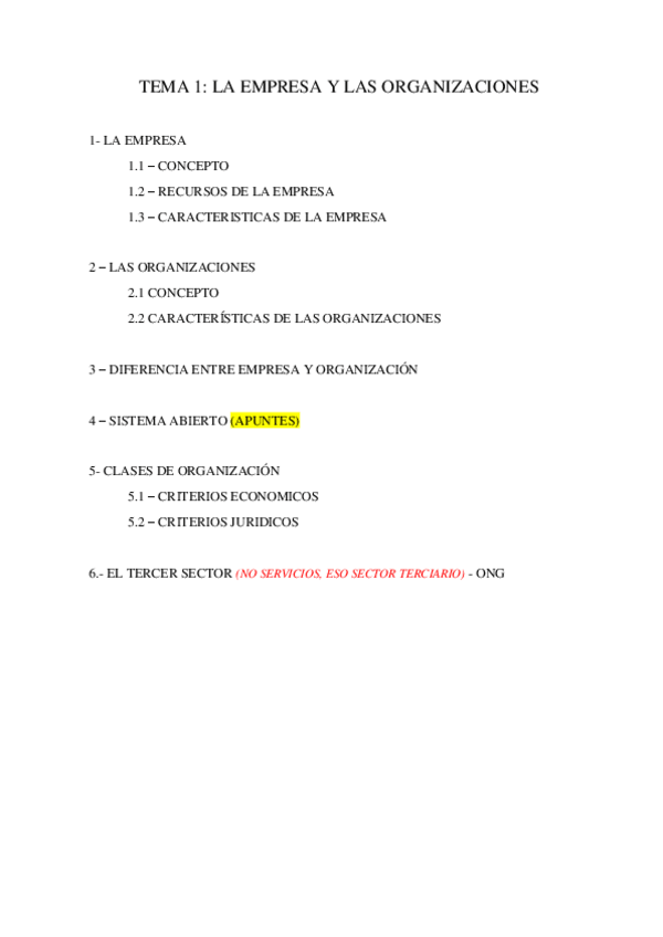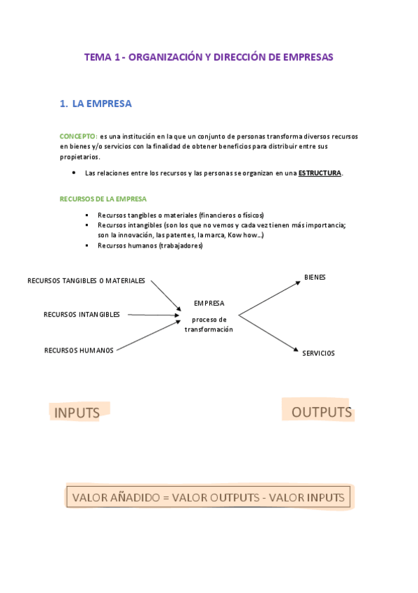 APUNTES TEMA 1 Y 2 ORGANIZACIÓN EMPRESAS