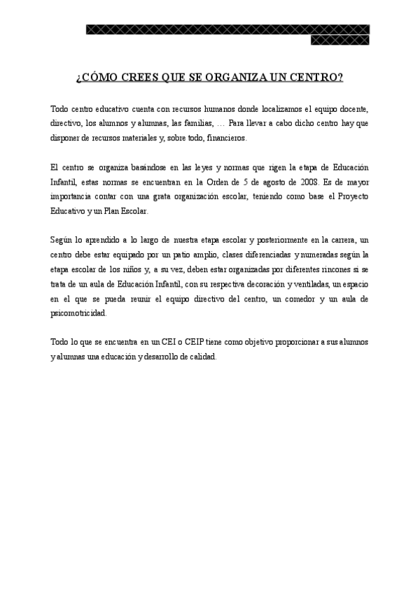 He publicado nuevos trabajos de 2º Organización de la Escuela y del Aula en Educación Infantil: Ensayo final organización.pdf