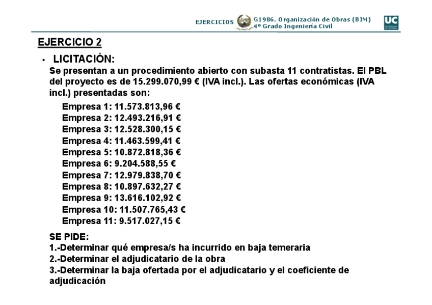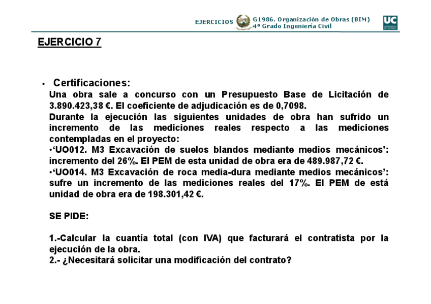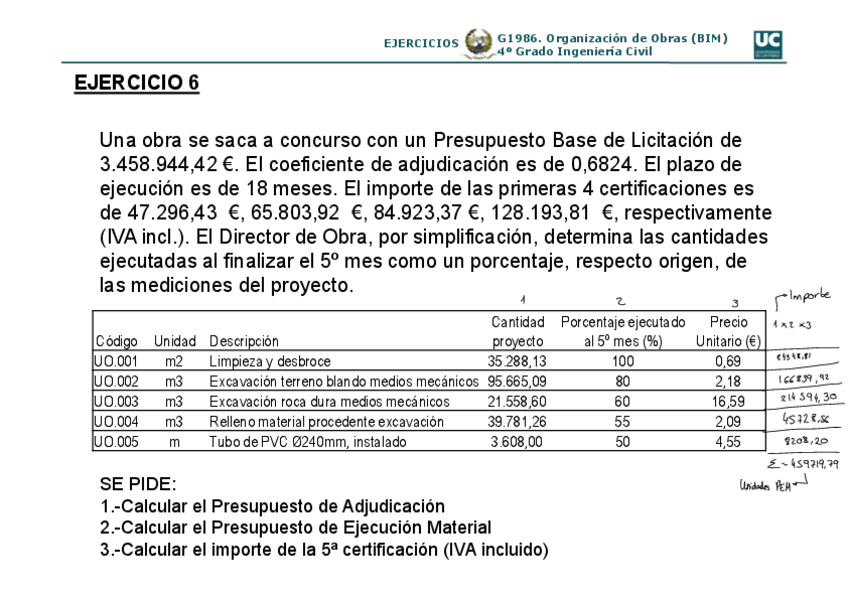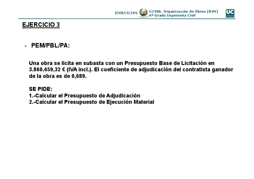 He publicado nuevos ejercicios de 4º Organización de Obras (Bim): Ejercicios.pdf