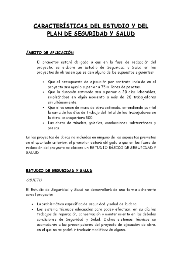 He publicado nuevos apuntes de 4º Organización de Obras (Bim): CARACTERÍSTICAS DEL ESTUDIO Y DEL PLAN DE SEGURIDAD Y SALUD.pdf