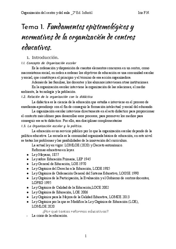 He publicado nuevos apuntes de 2º Organización del centro y del aula en Educación Infantil: Tema-1.pdf