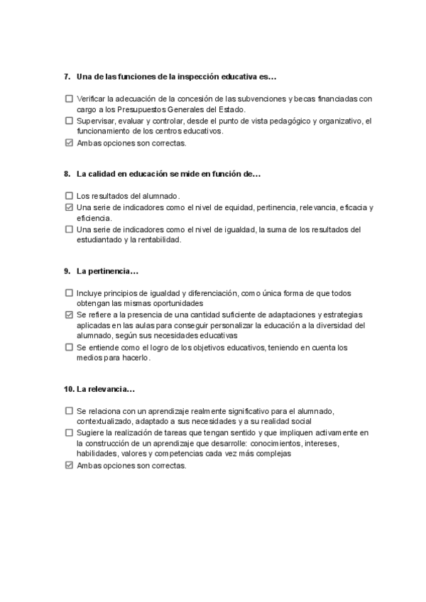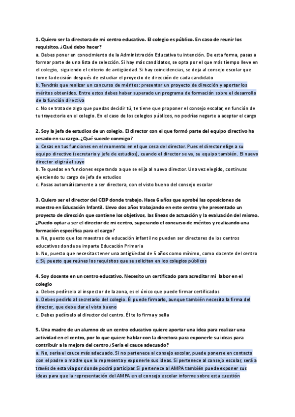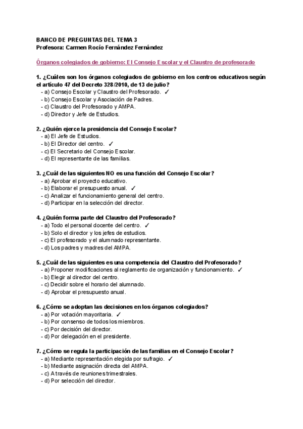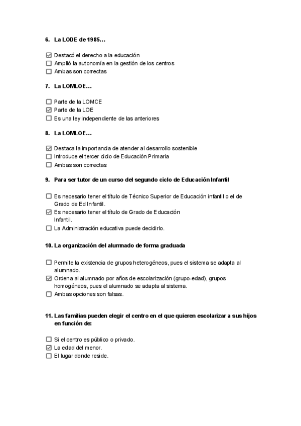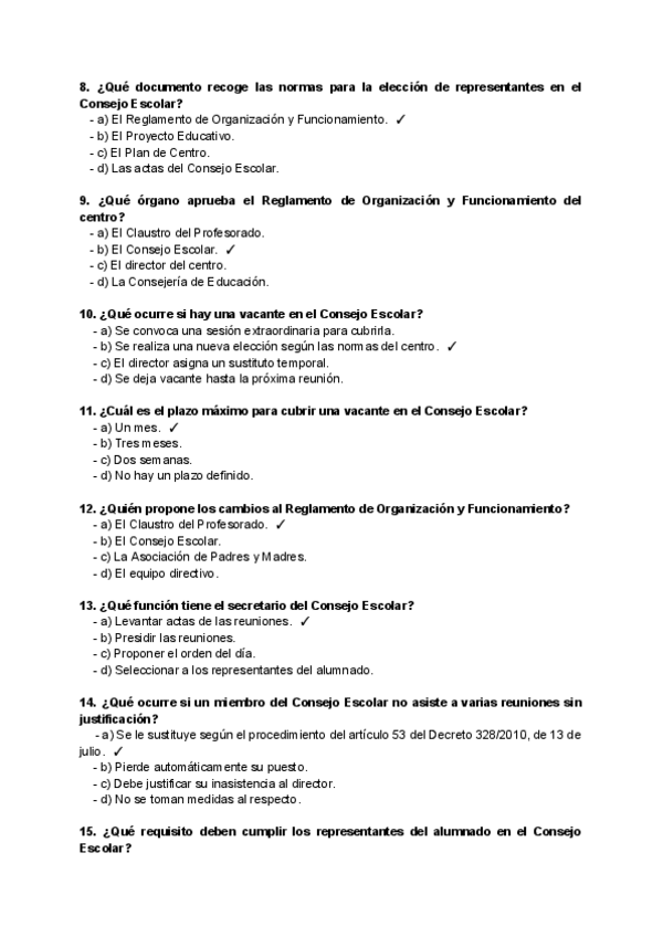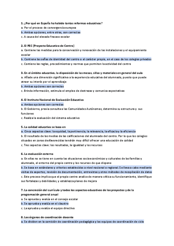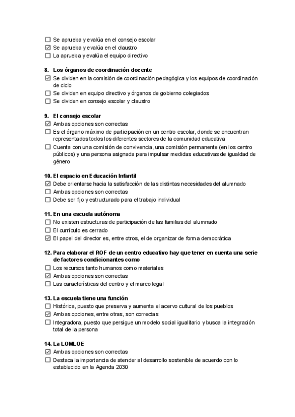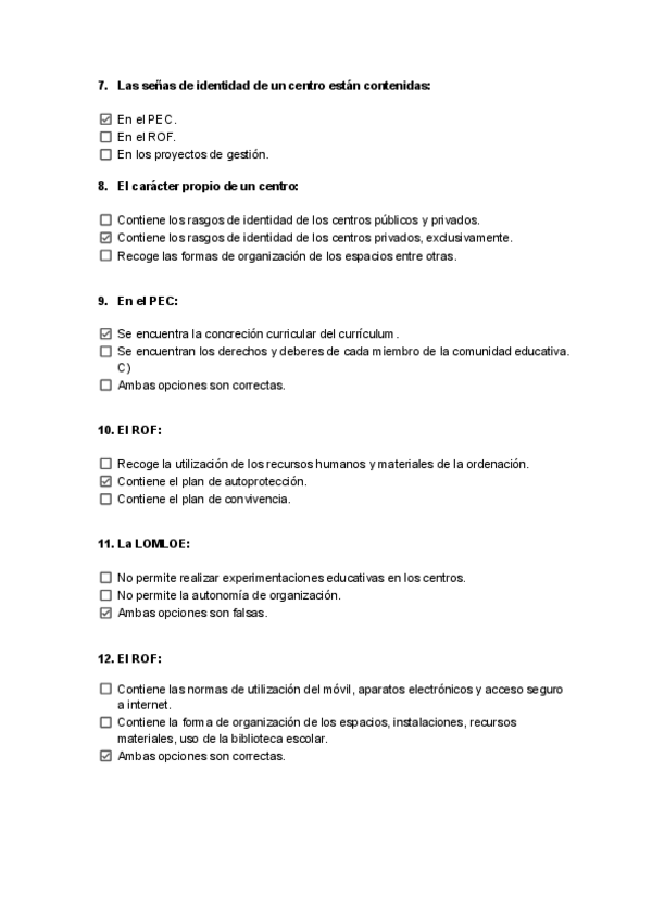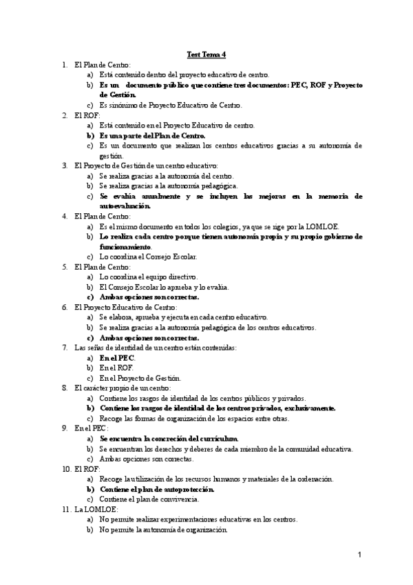 Preguntas tipo test de Examen - Organización del centro y del aula