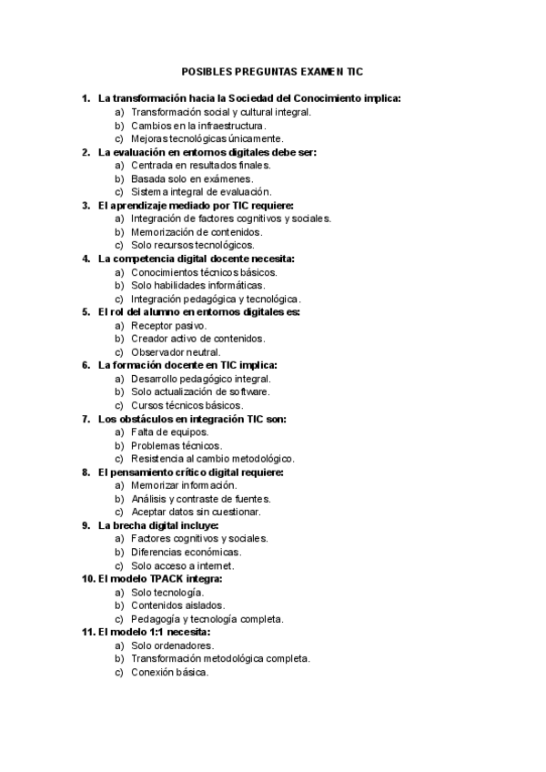 He publicado nuevos examenes de 2º Organización escolar: tiempos, espacios, medios y recursos educativos en Educación Primaria: POSIBLES-PREGUNTAS-EXAMEN-TIC-con-respuestas.pdf