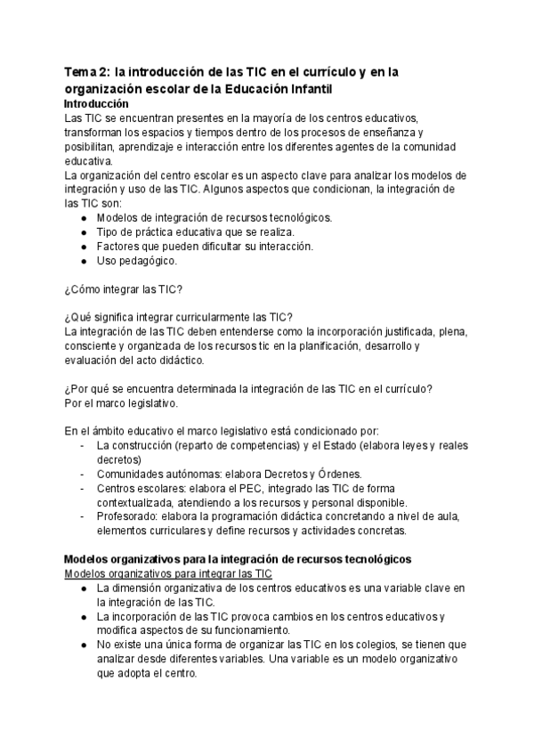 He publicado nuevos apuntes de 2º Organización escolar: tiempos, espacios, medios y recursos en educación infantil: Tema-2-Tic.pdf