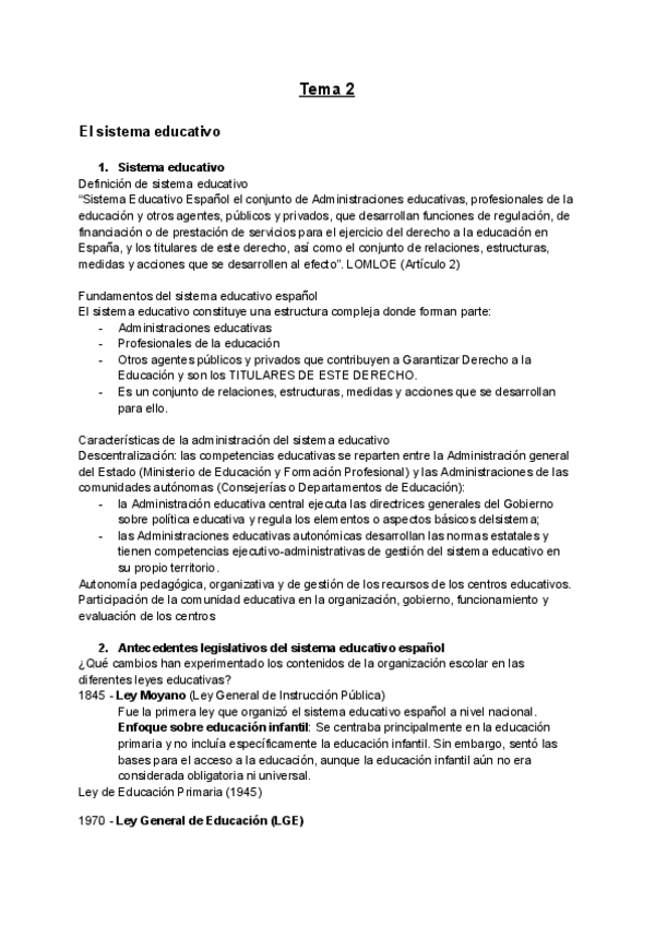 He publicado nuevos apuntes de 2º Organización escolar: tiempos, espacios, medios y recursos en educación infantil: Tema-2-el-sistema-educativo.pdf