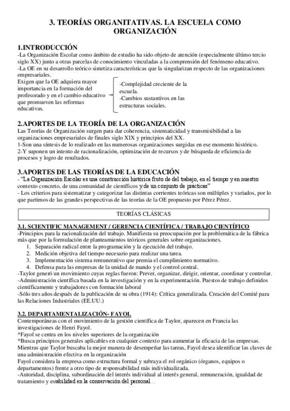 ORGANIZACIÓN ESCOLAR (resúmenes)
