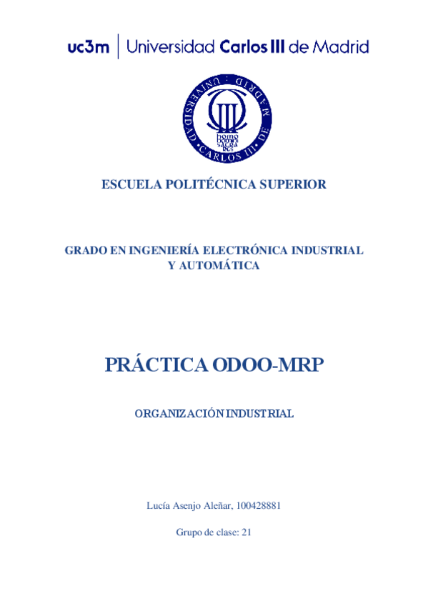 He publicado nuevos practicas de 4º Organización Industrial: Práctica- Odoo