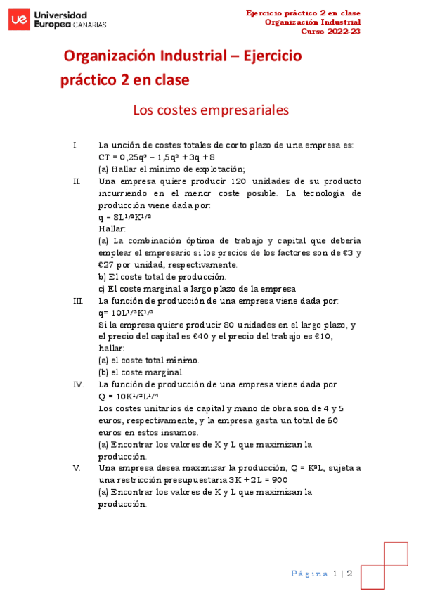 He publicado nuevos ejercicios de 2º Organización Industrial: Ejercicios-Tema-1.pdf