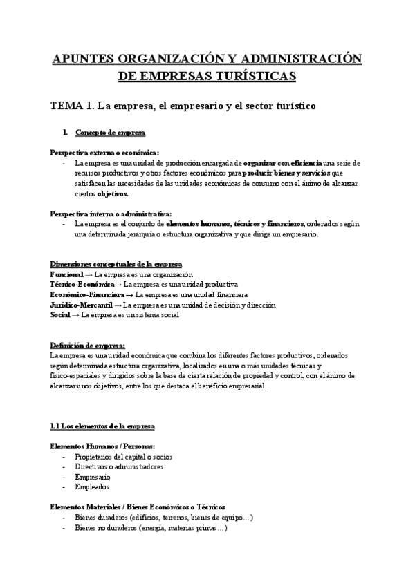 He publicado nuevos apuntes de 1º Organizacion y Administracion de Empresas Turisticas: Organización Y administración de Empresas