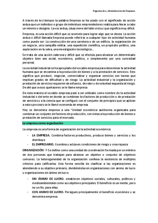 He publicado nuevos apuntes de 2º Organizacion y Administracion de Empresas: Temas 1-4